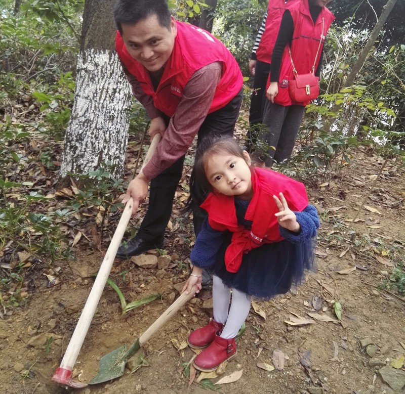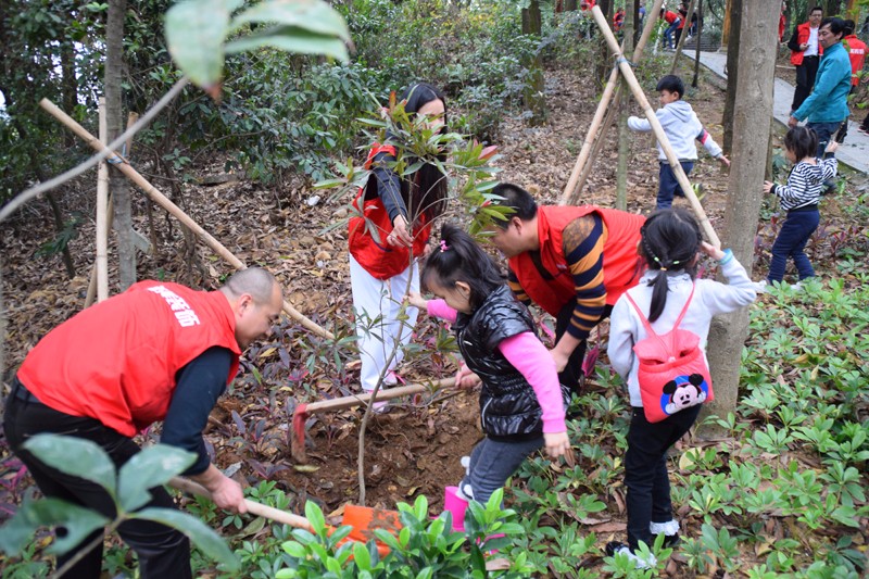 此次植樹活動很多成員是全家動員,共同上陣,大人們負責扶著樹種和鋤土相對繁重的工作,小朋友們也是非常的活躍,在旁邊跟著忙乎,一起植上代表綠色和希望的小樹,讓小樹帶著自己對家人、對孩子、對生活的美麗期許茁壯成長。