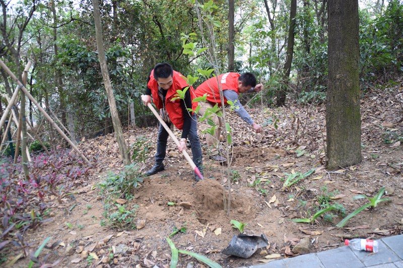 下午2點半,集團員工準時到達集合地點,由工作人員的指引和協助下,大家開始有條不紊的領取鐵鍬等植樹裝備。你提鋤頭,我拎鐵鍬,他扶樹苗,大家密切配合,忙得不亦樂乎,將一棵棵樹苗栽入土中。本次植樹活動共種植100多棵樹苗,全由集團成員自愿認購的。